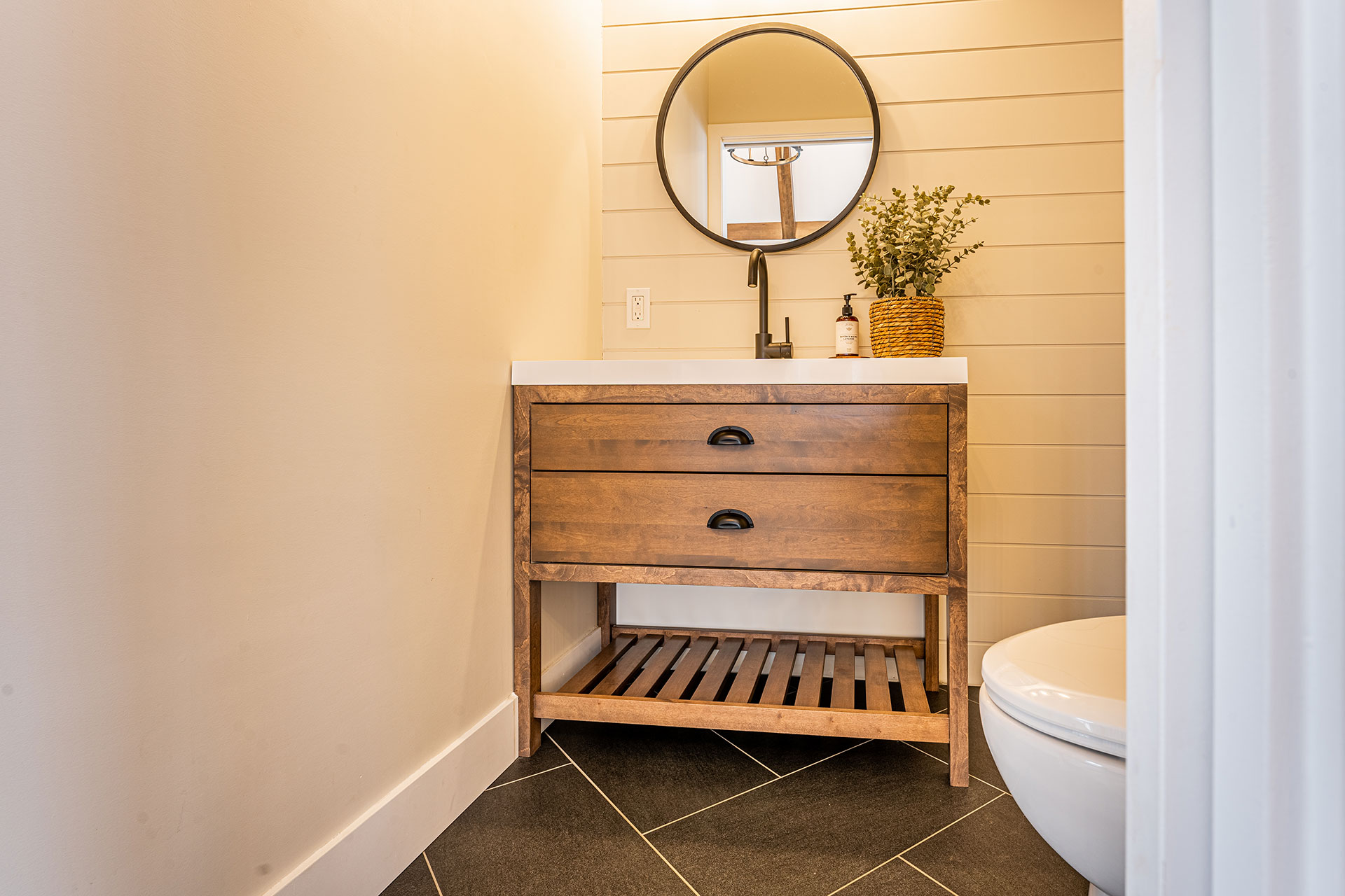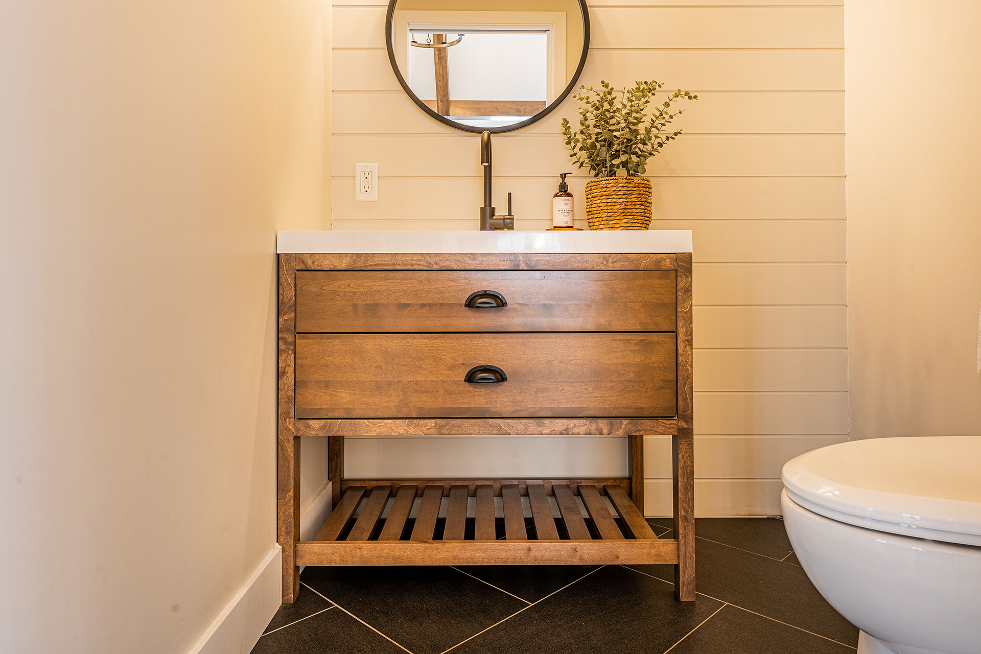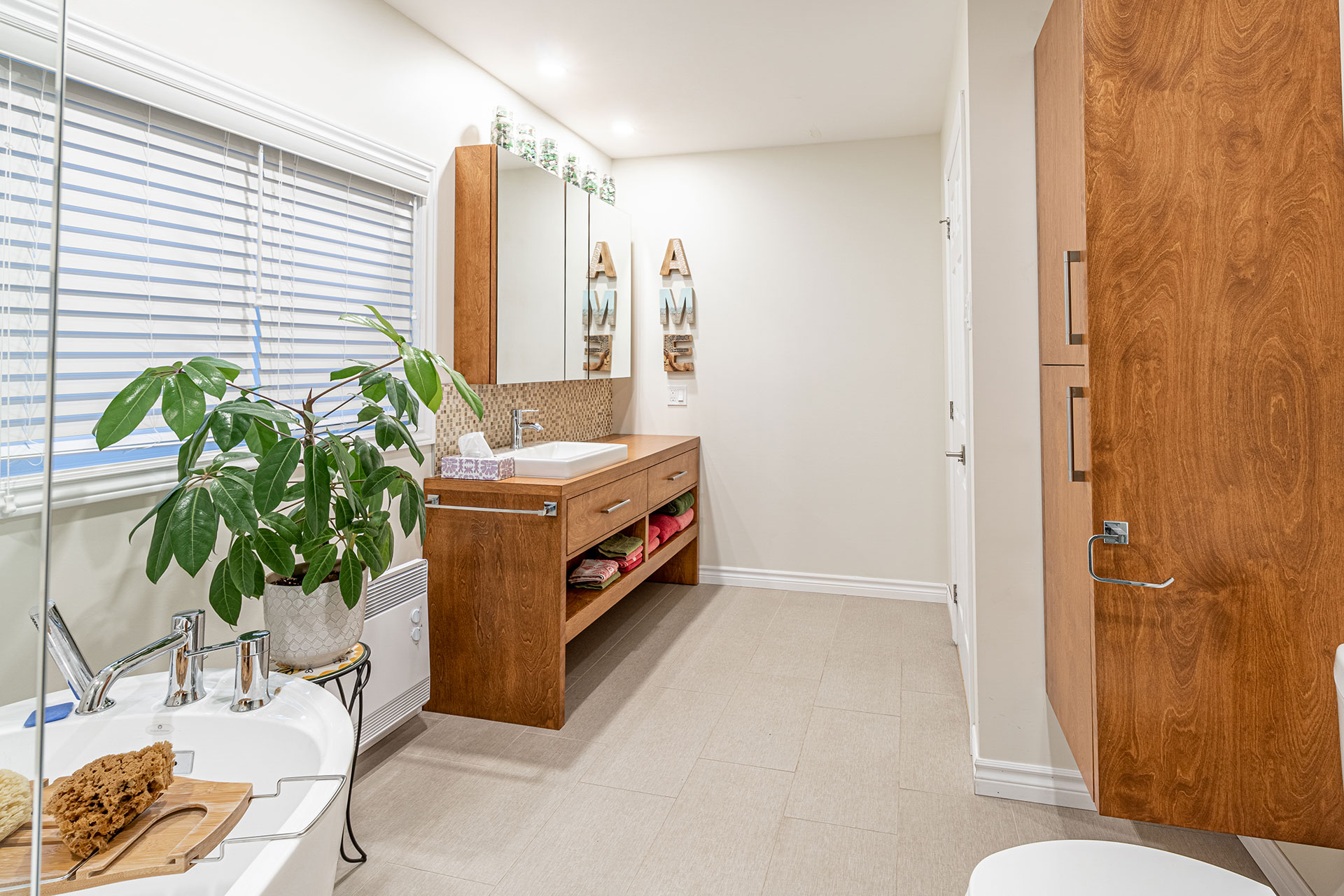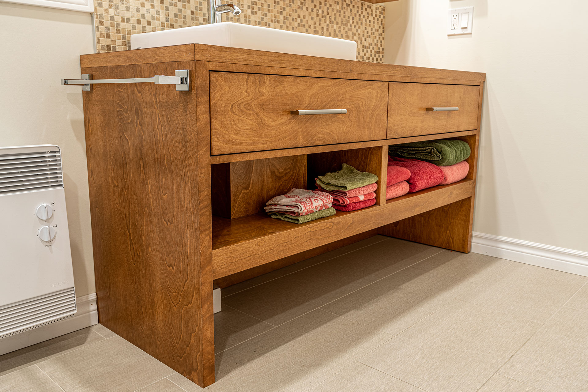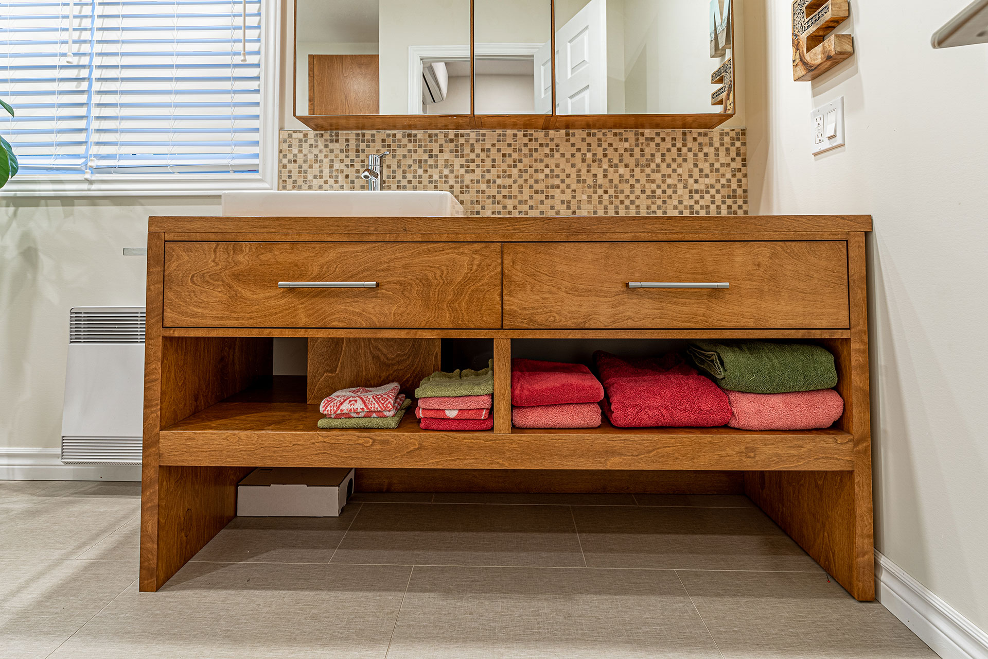 Vanité et rangement de salle de bain.