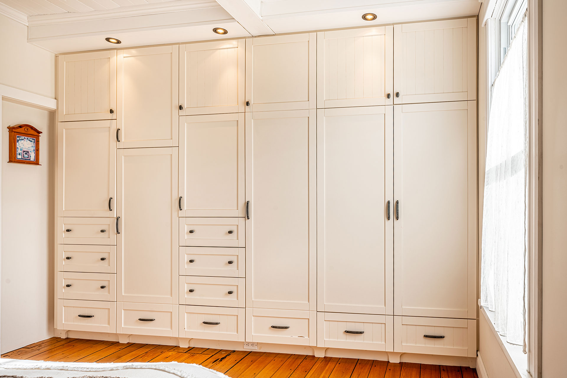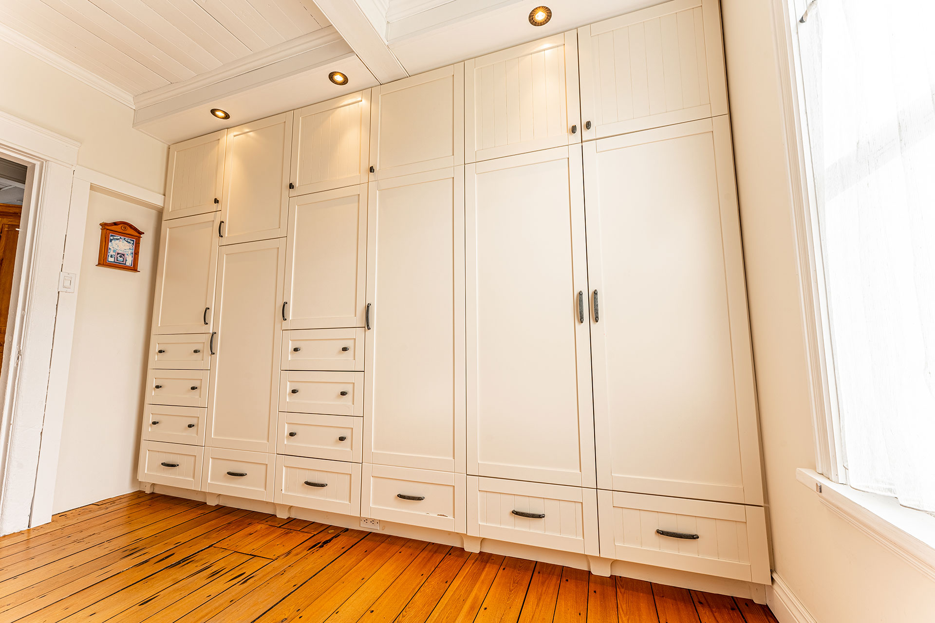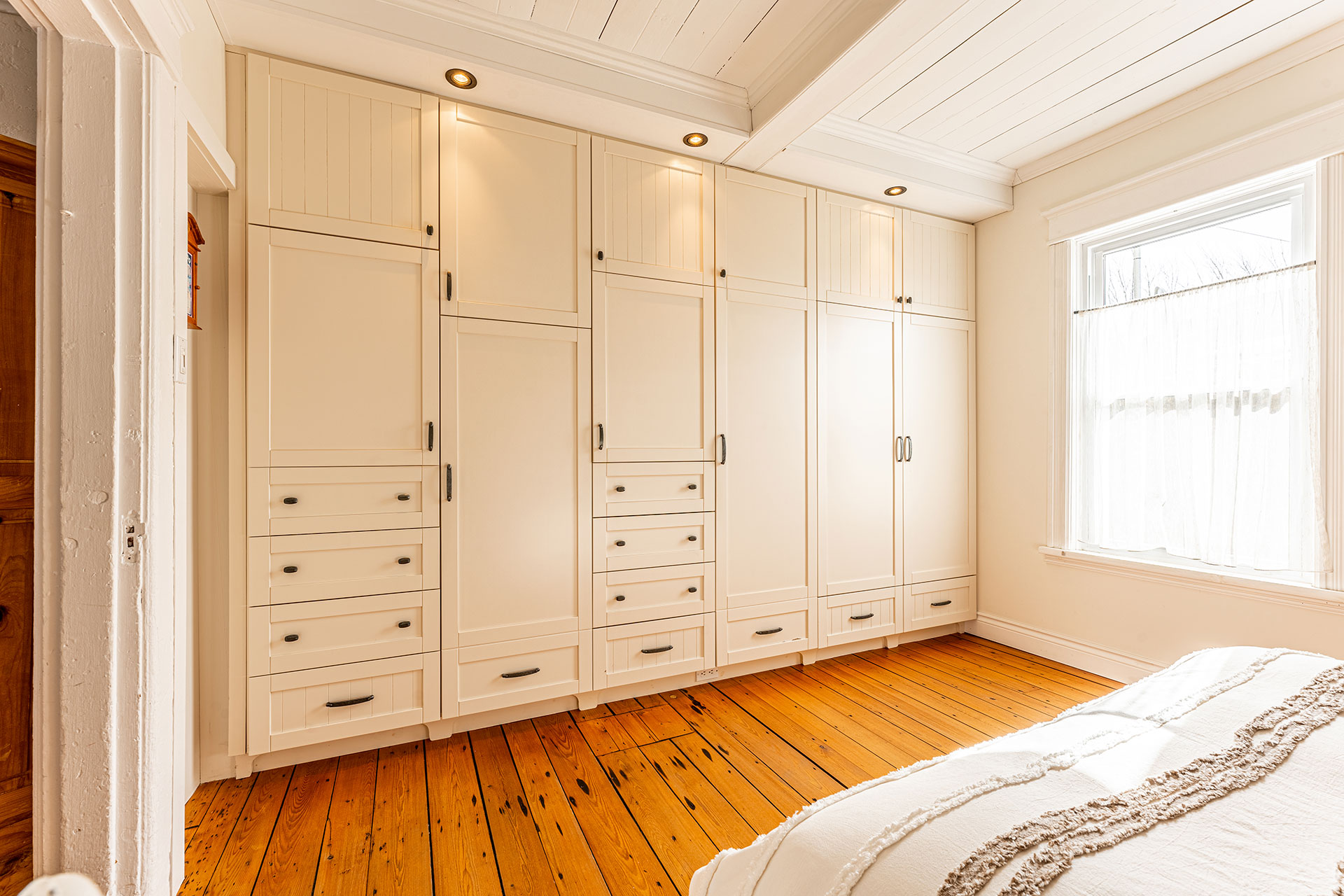 Création d’une unité de rangement murale haut de gamme pour chambre à coucher.