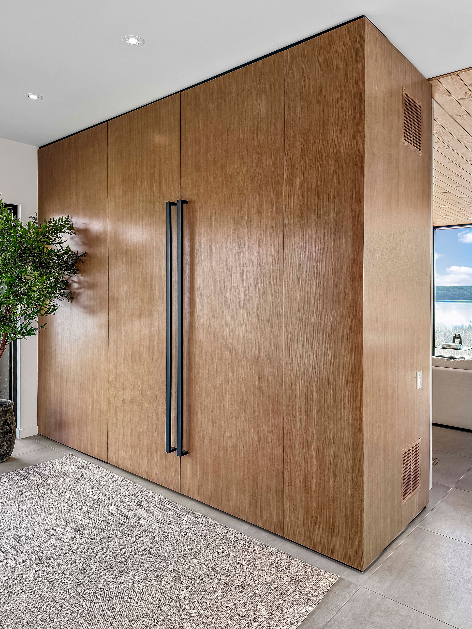 Porte de penderie de 10 pi fabriquée en plaqué de chêne blanc et finie avec un vernis à base d’eau.